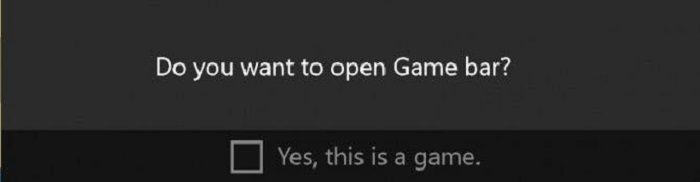 STEP 2. When you see a dialog asking if you want to open the Xbox Game Bar, click the "Yes, this is a game" option.